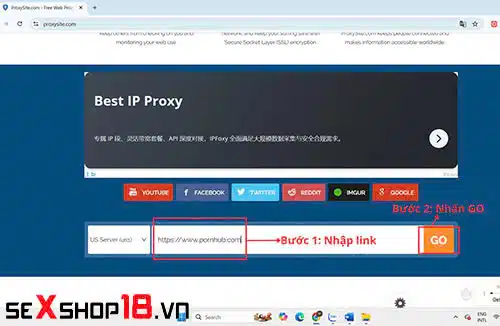 – Nhập địa chỉ pornhub.com vào ô tìm kiếm trên giao diện proxy.