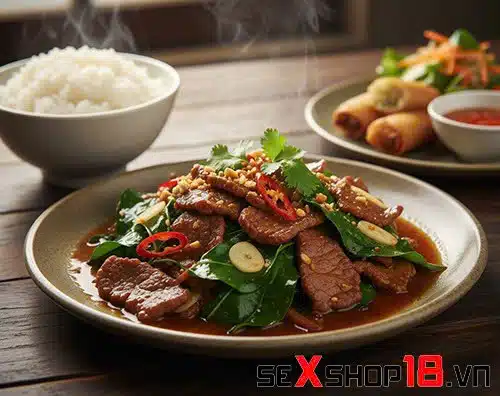 Món thịt bò xào lá lốt là sự kết hợp hoàn hảo giữa protein và thảo dược giúp cải thiện phong độ phái mạnh.