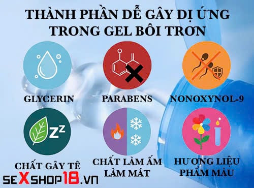 Một trong những nguyên nhân hàng đầu gây dị ứng là các thành phần hóa học có trong gel bôi trơn. Một số sản phẩm chứa hương liệu, chất tạo màu, chất bảo quản hoặc paraben có thể gây kích ứng mạnh khi tiếp xúc trực tiếp với niêm mạc vùng kín. Ngoài ra, glycerin hoặc propylene glycol với nồng độ cao cũng dễ làm mất cân bằng độ pH tự nhiên, tạo điều kiện cho vi khuẩn phát triển và xuất hiện dấu hiệu dị ứng.