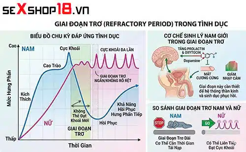 – Sau xuất tinh, nam giới bước vào refractory period (giai đoạn trơ) — thời gian cơ thể tái nạp năng lượng sinh lý.