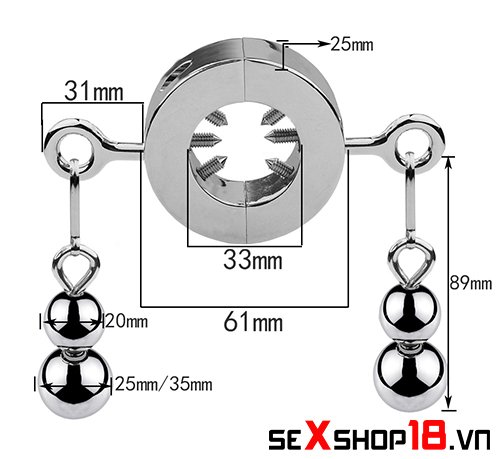 Vòng đeo bìu chơi bạo dâm có bi treo độc lạ (BZ75) có 2 bi treo mỗi bên với trọng lượng khác nhau và dễ dàng tháo rời.